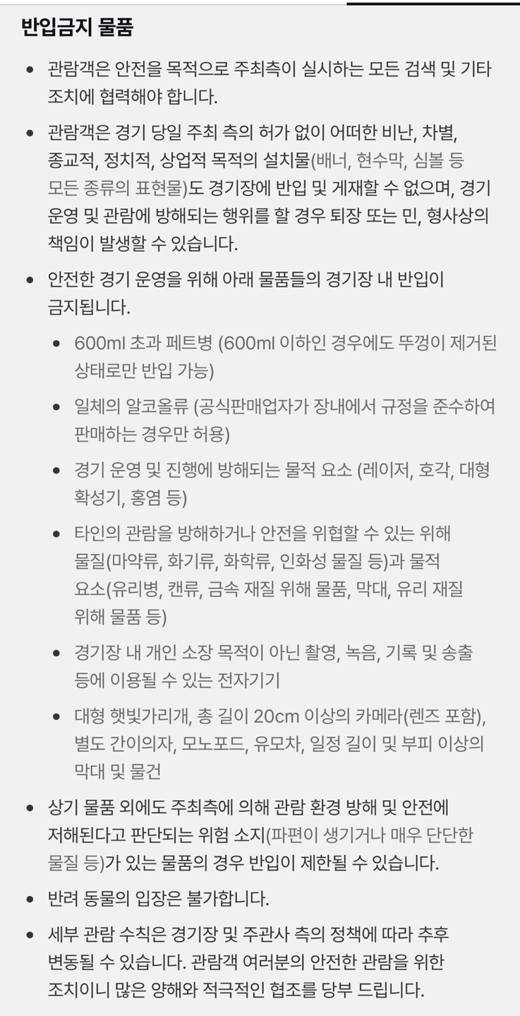 반입금지 물품 확인해야 한다.