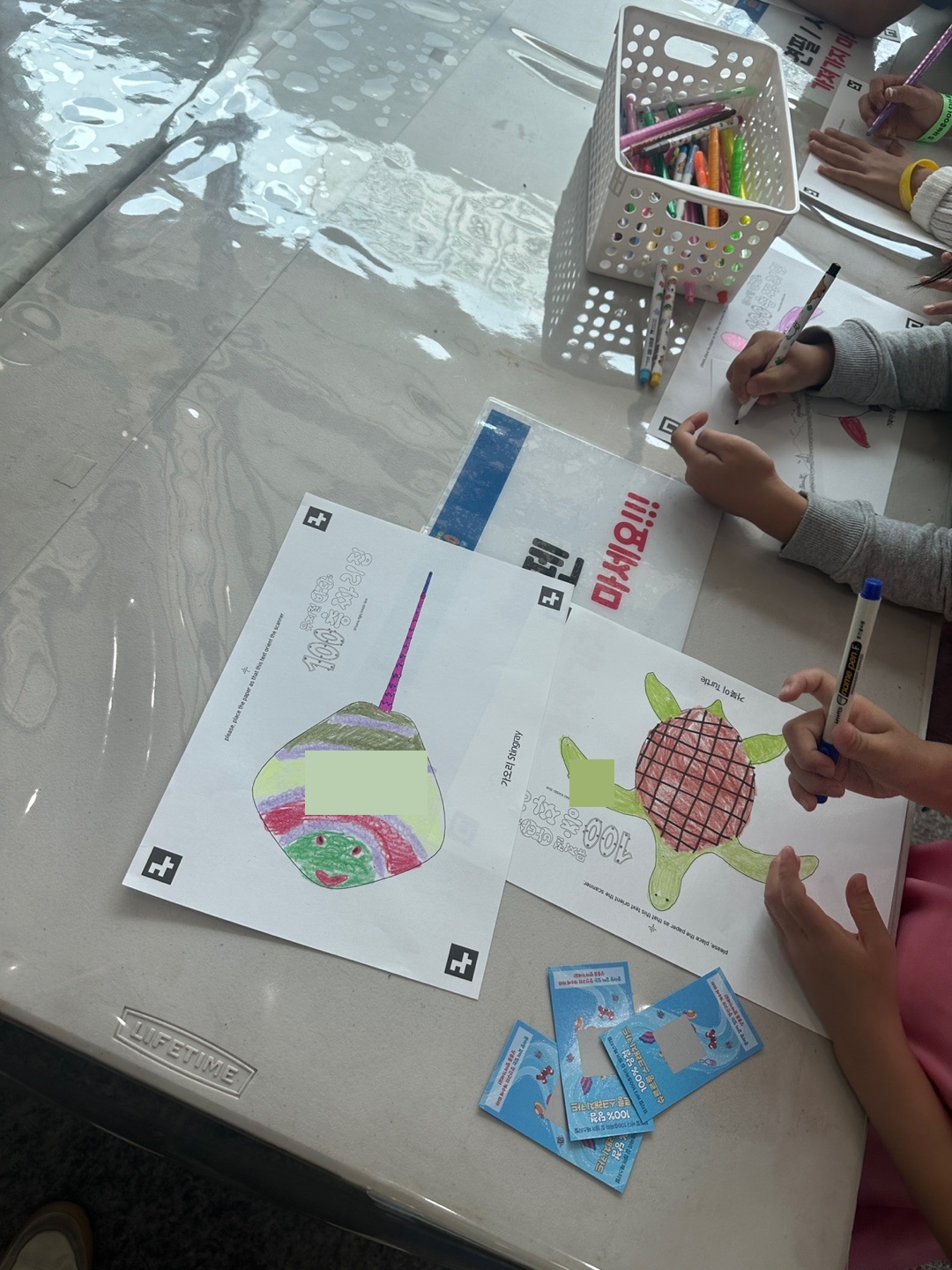이곳에서 준비된 종이에 색칠을 해서 바구니에 제출을 하면 공연중에 무대 화면에 내가 색칠한 그림이 나올 수도 있다.