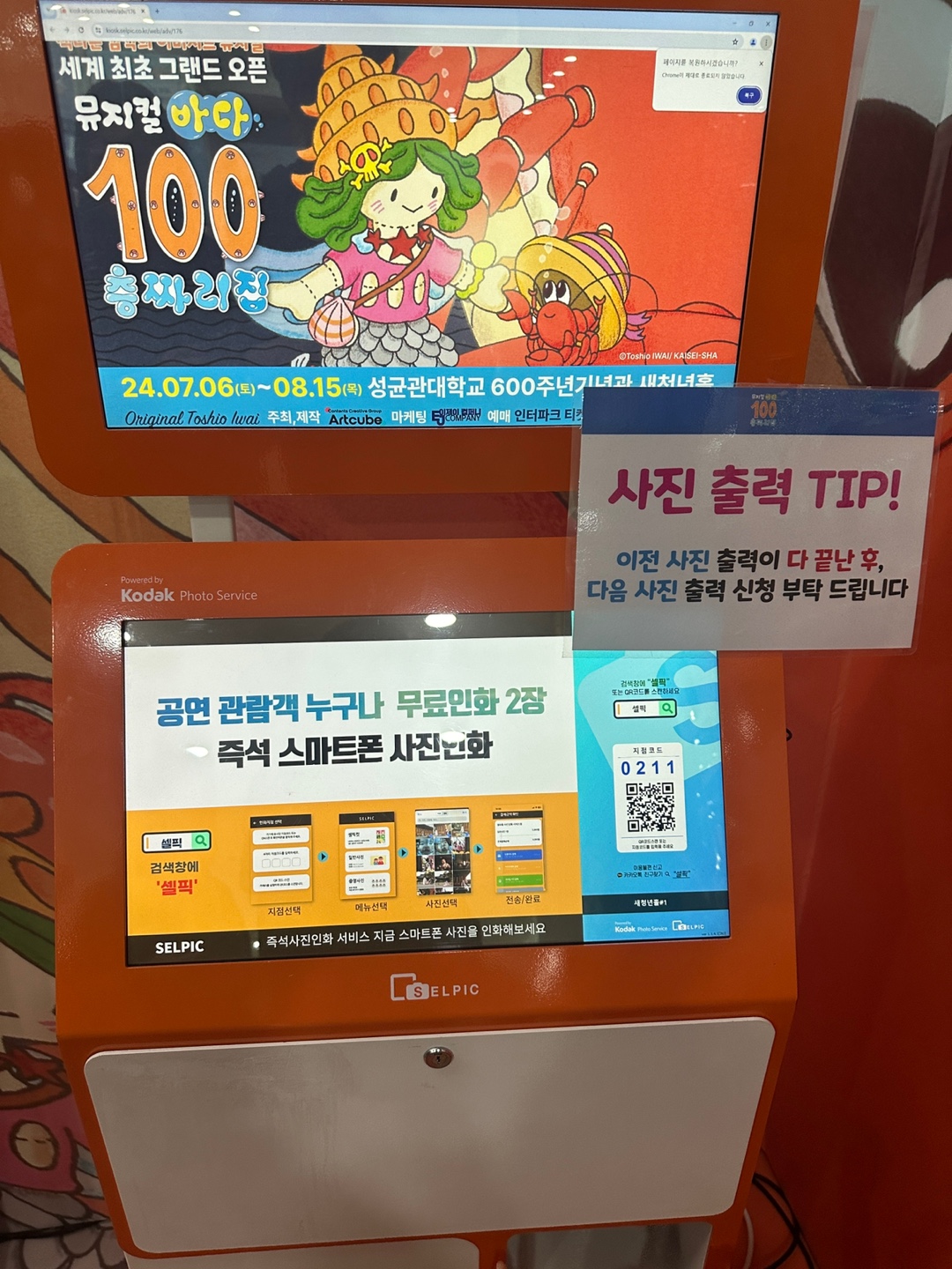 스마트폰으로 '셀픽' 큐알 접속 해서 인화하면 된다.