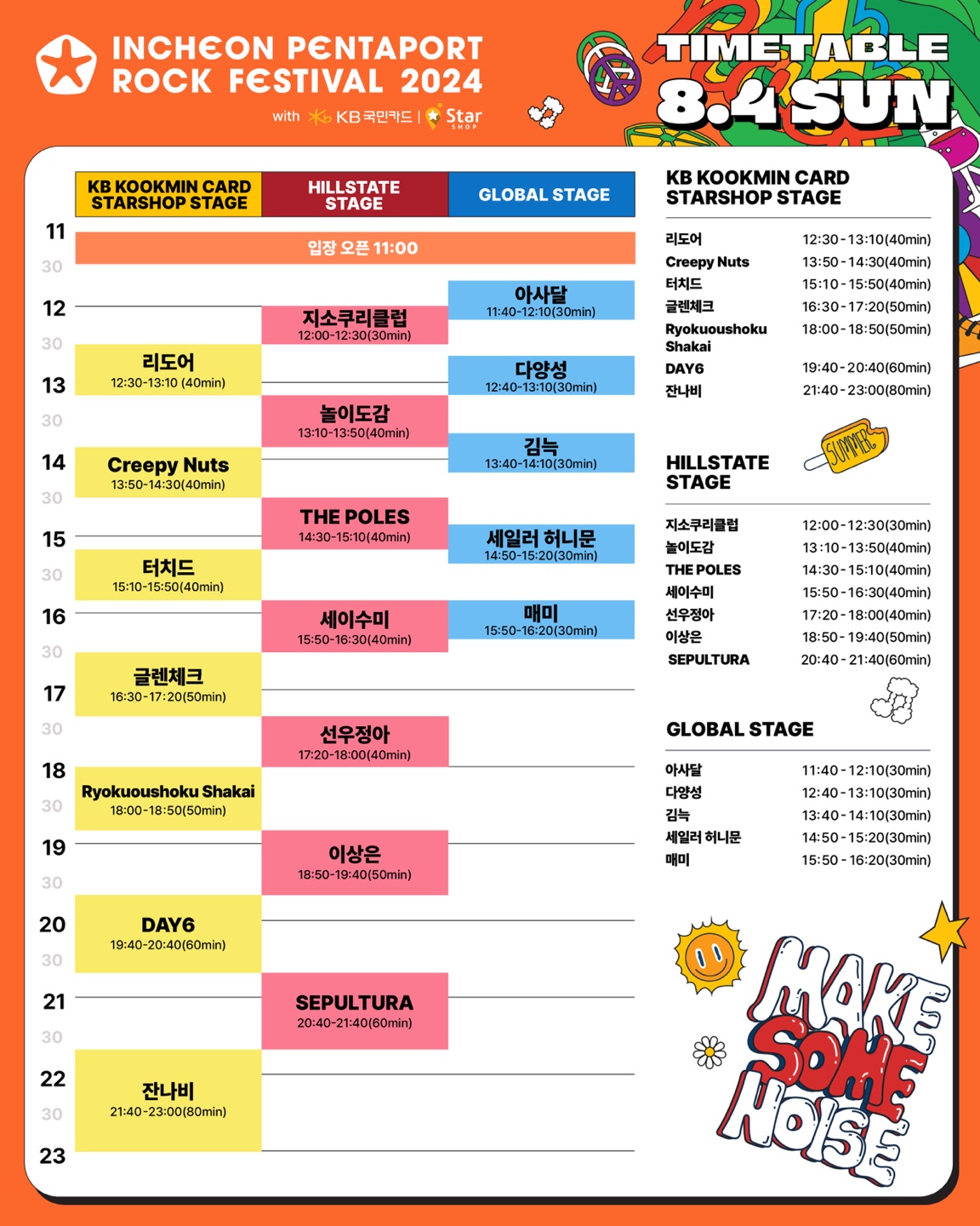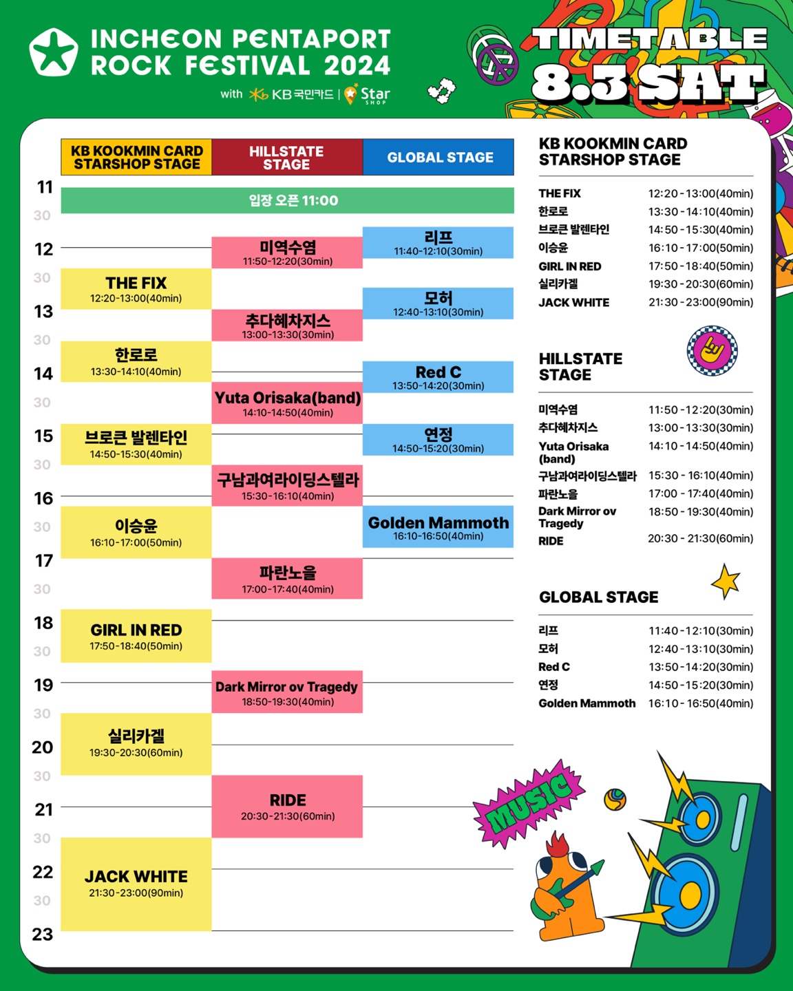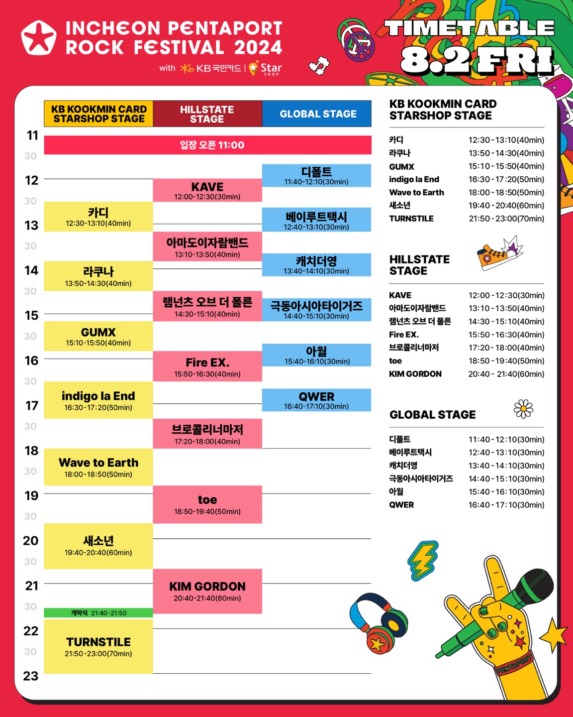 공연 순서와 시간이 담긴 타임테이블도 공개됐다.
