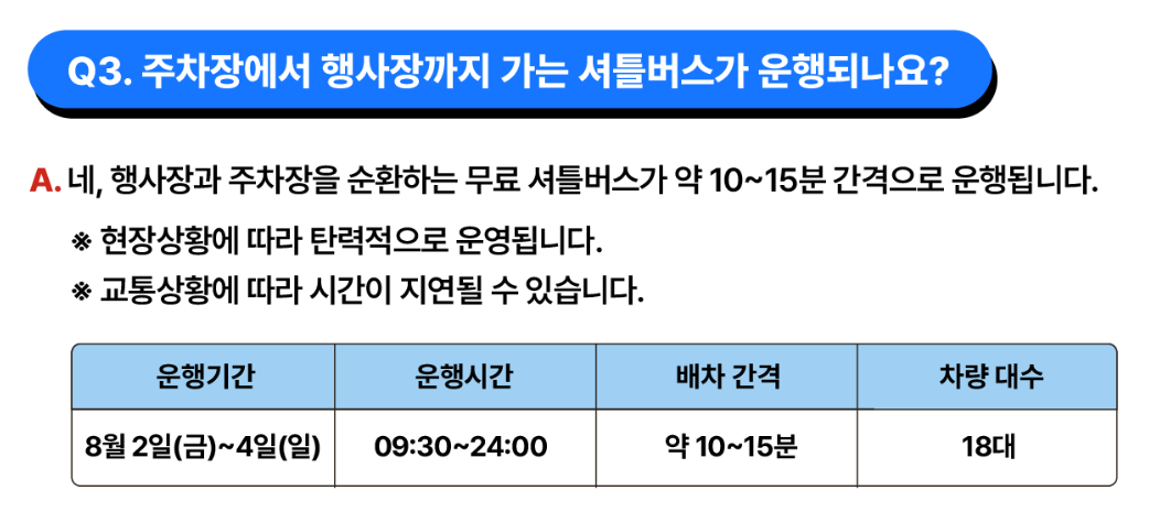 운영, 티켓, 교통, 캠핑존, 피크닉존, 리프레시존 등 FAQ가 공지되었다.