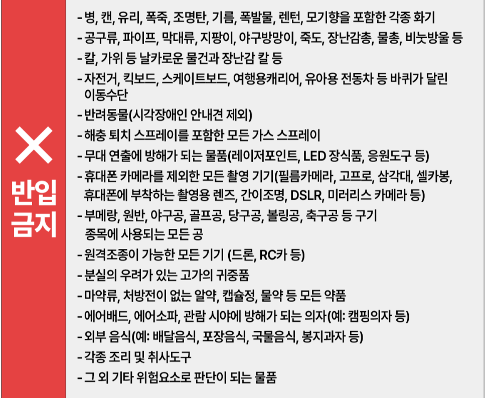🚫 병, 캔, 유리, 폭중, 조명탄, 기름, 폭발물, 랜턴, 모기향 등 화기