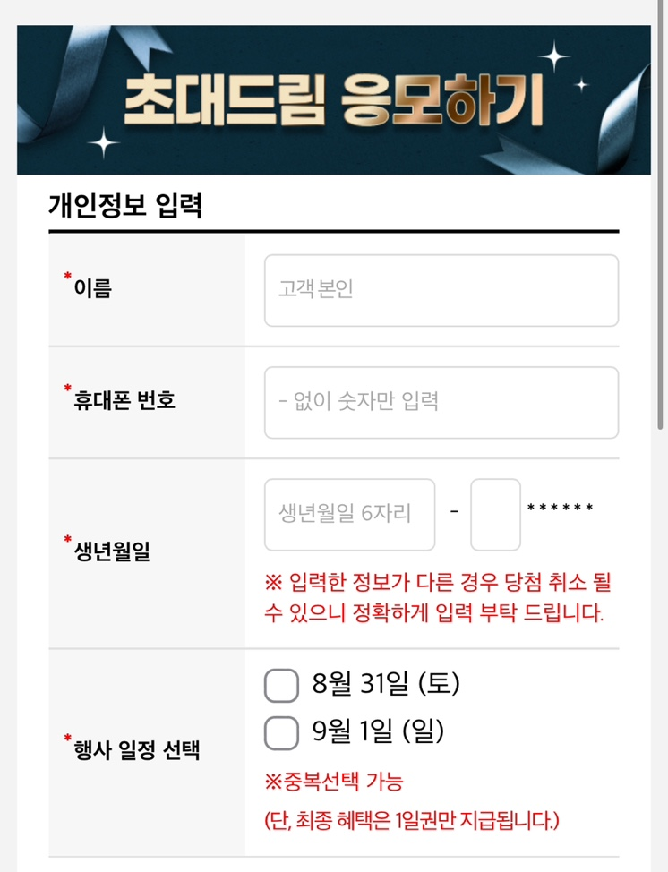 8월 31일, 9월 1일 중복 신청할 수 있다.