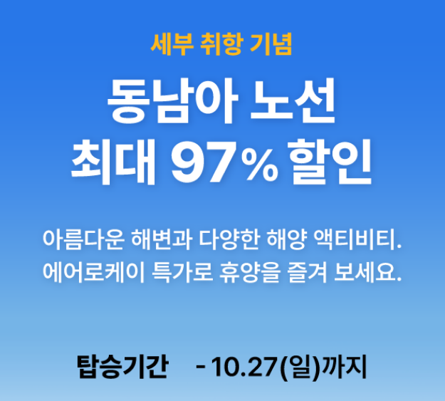 세부 취항 기념으로 동남아 노선 최대 97% 할인도 진행 중이다.