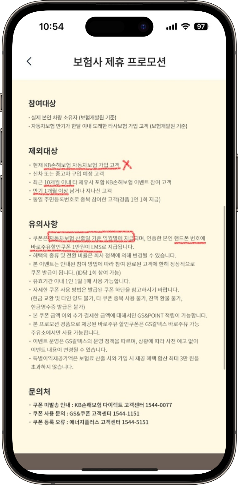 - 최근 10개월 이내 KB손해보험 이벤트 참여이력 없을 것