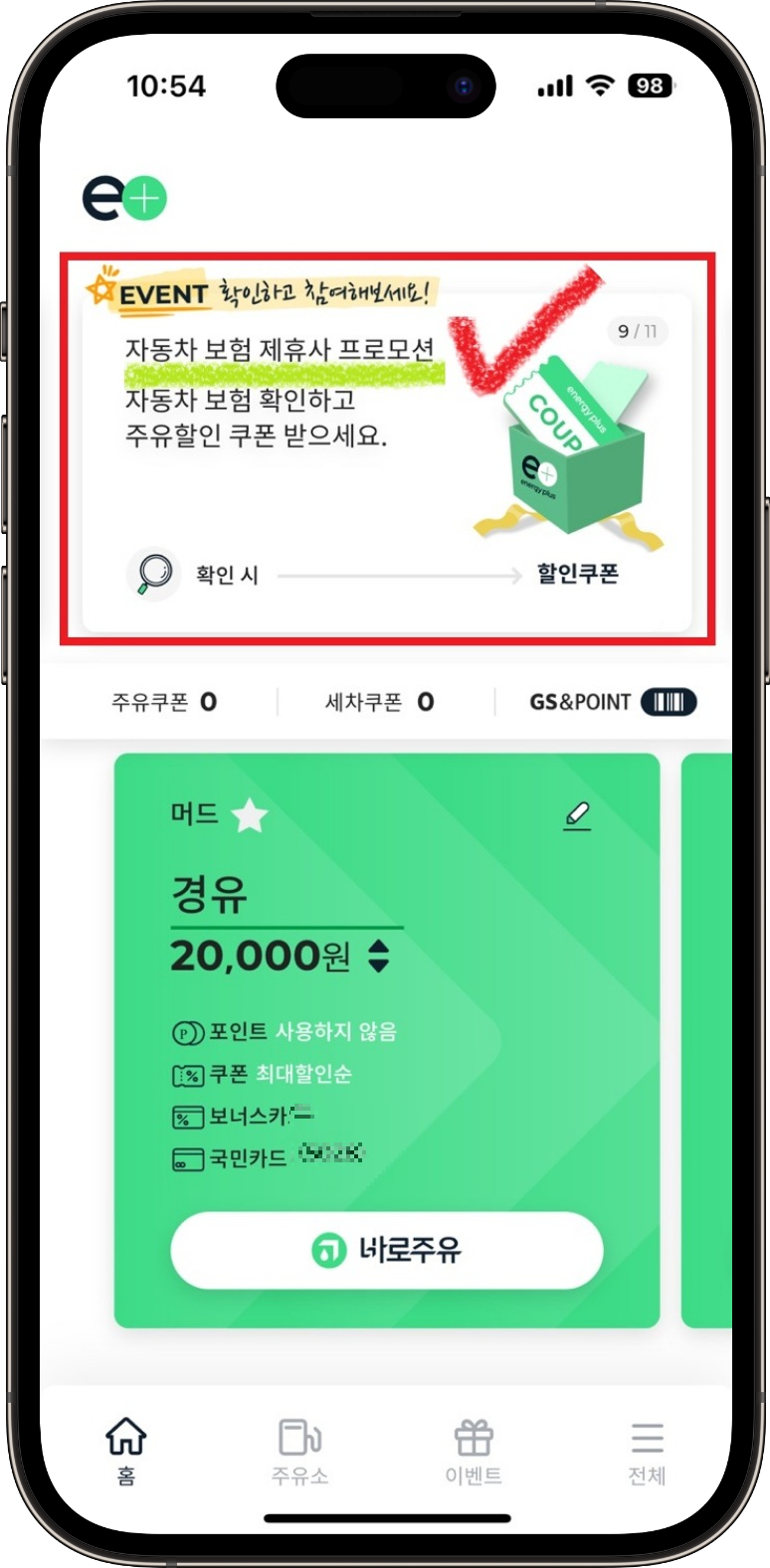 GS칼텍스 에너지플러스앱에서 참여하면 1만원 주유쿠폰을 주길래 참여하고 공유해본다.