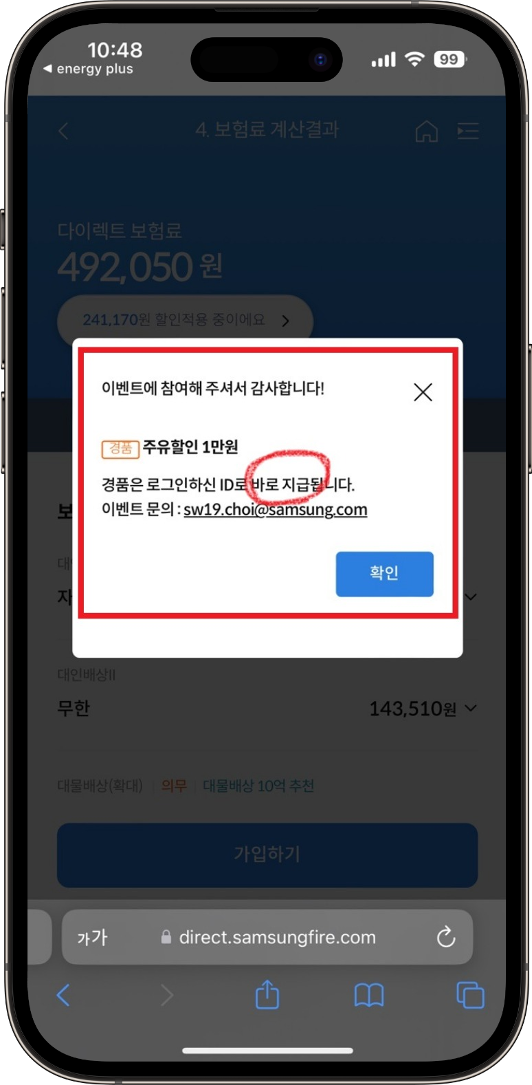✅ 삼성화재 바로주유 할인쿠폰은 보험료 조회 완료 즉시 지급된다.