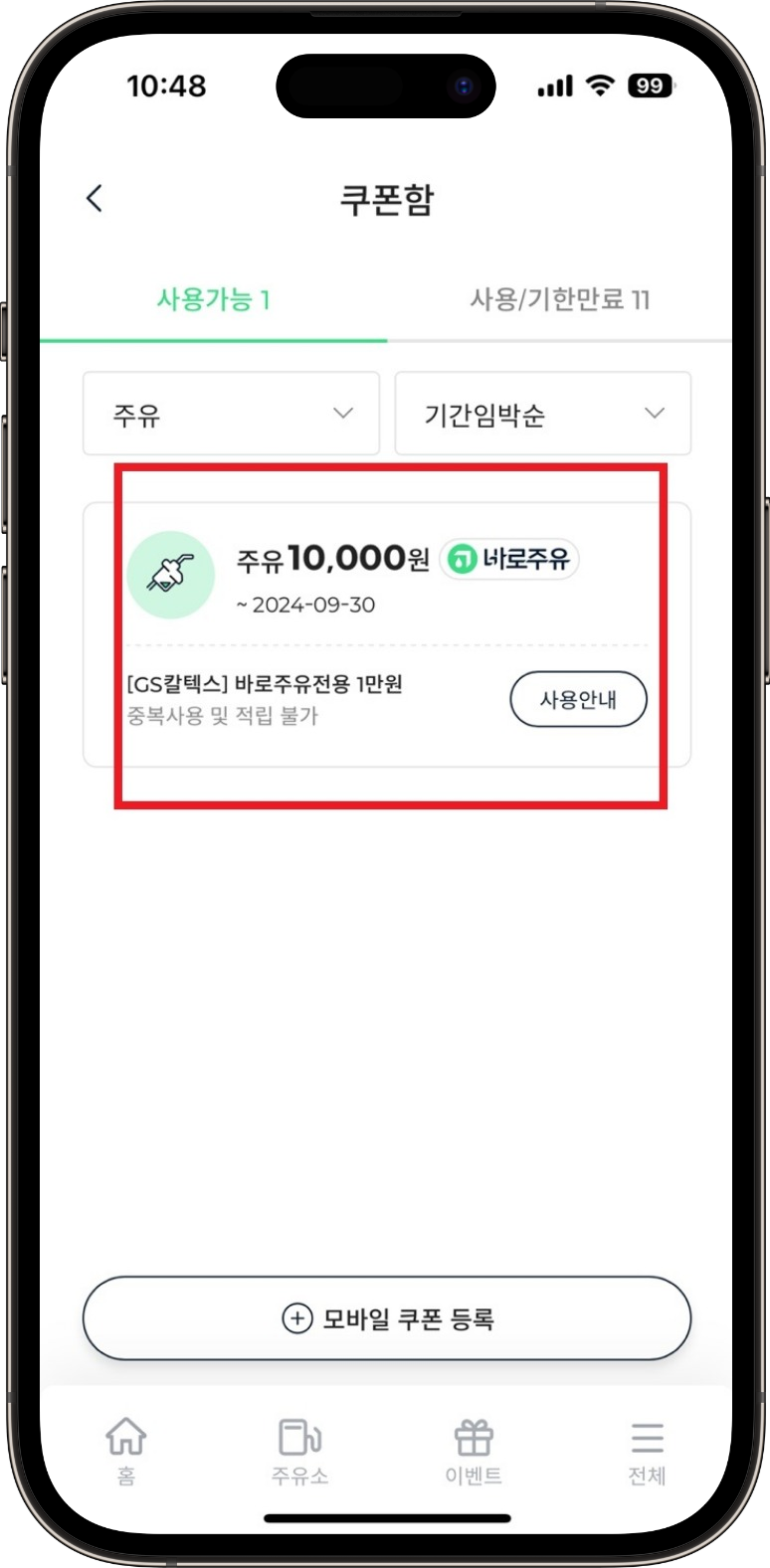 주유쿠폰은 바로 들어오지 않고 다음달 말일에 지급된다.