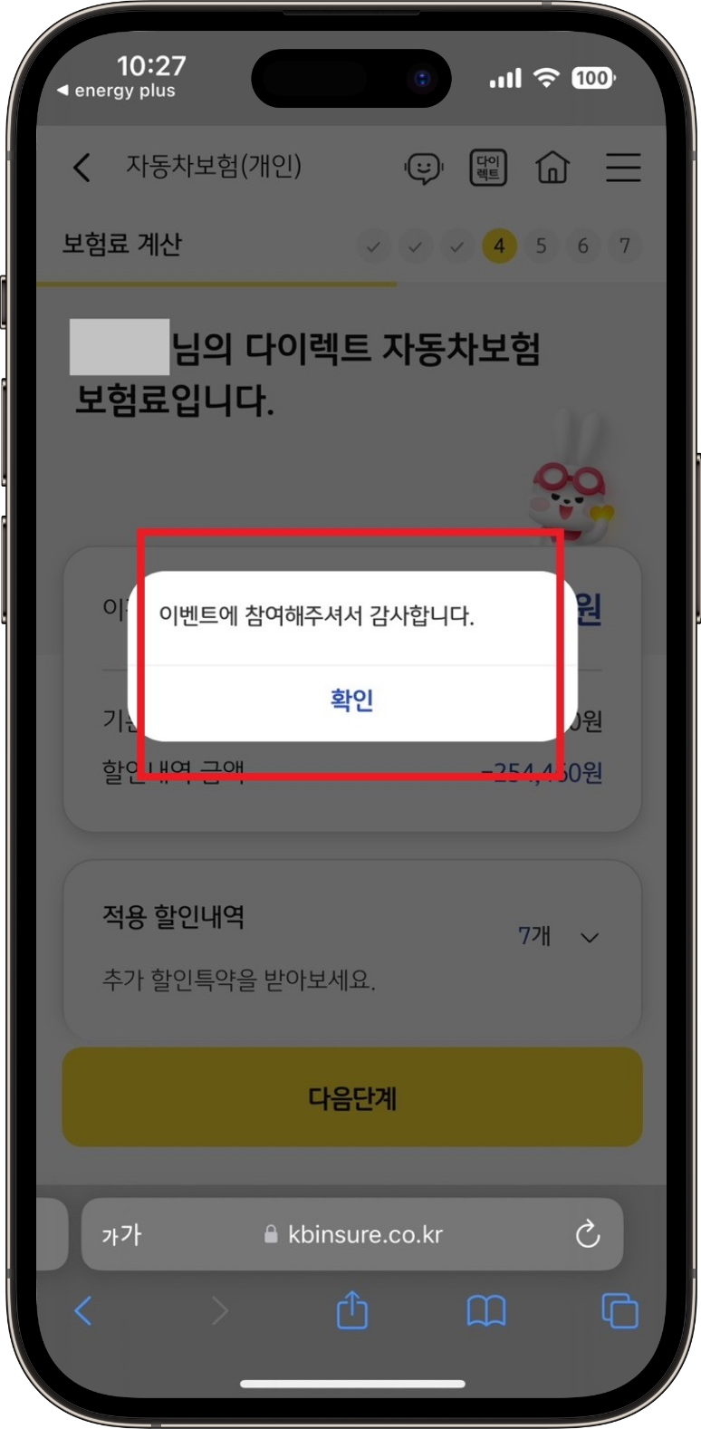 들어가보면 삼성화재와 KB손해보험 이벤트가 있다.
