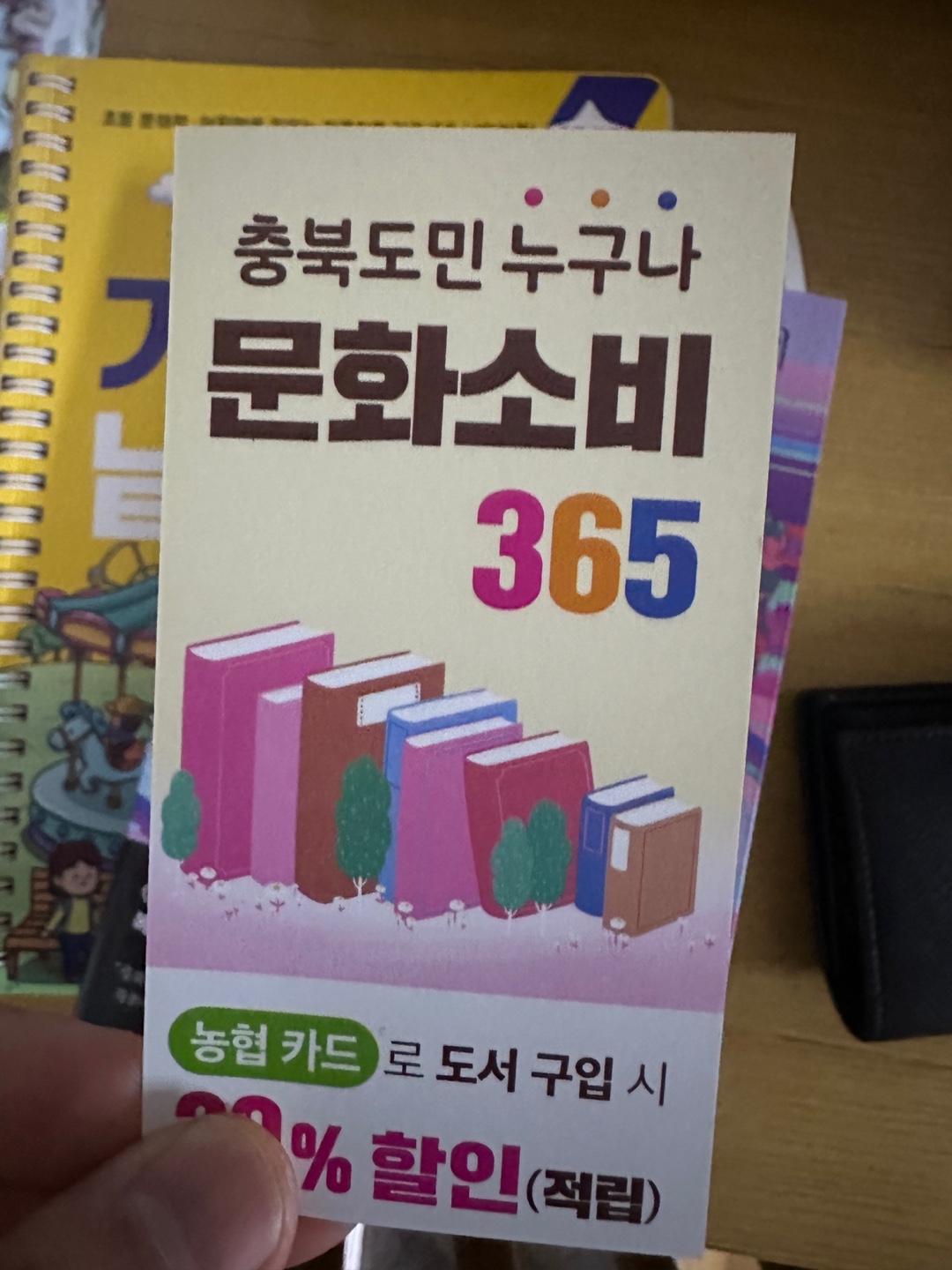 충청북도 주민이 충청북도 내에서 공연, 도서, 전시, 관광 등을 NH카드로 결제하면 30%캐시백을 해주는 문화소비365