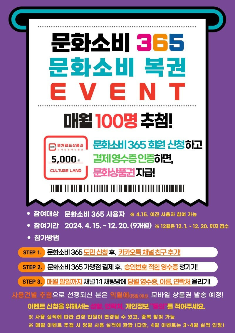 문화소비365 영수증이벤트