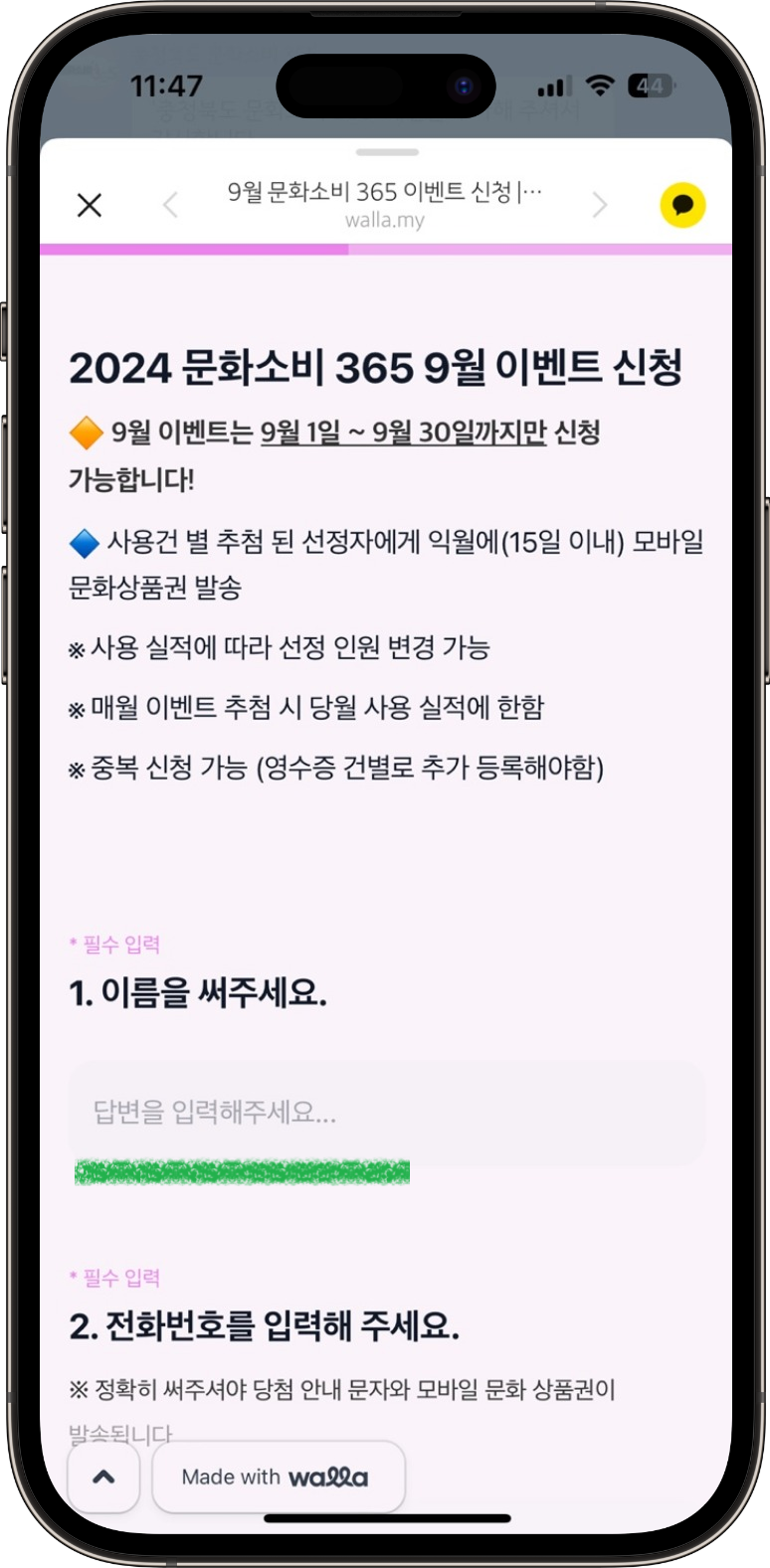 [이벤트 신청하기]를 선택한다.