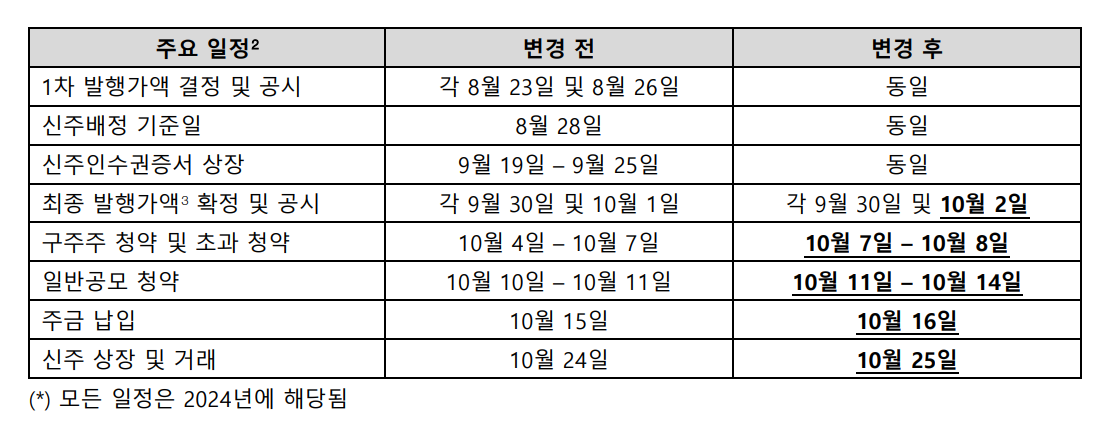 - ✅ 구주주청약 및 초과청약: 10월 7일 ~ 10월 8일