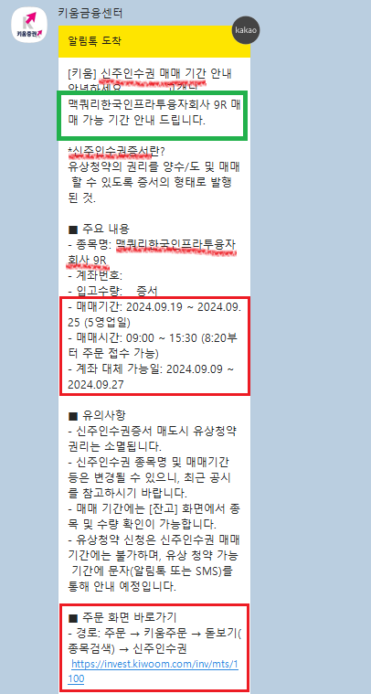 유상증자에 참여 조건이 되는 주주라면 증권사로부터 알림메세지를 받았을 것이다.