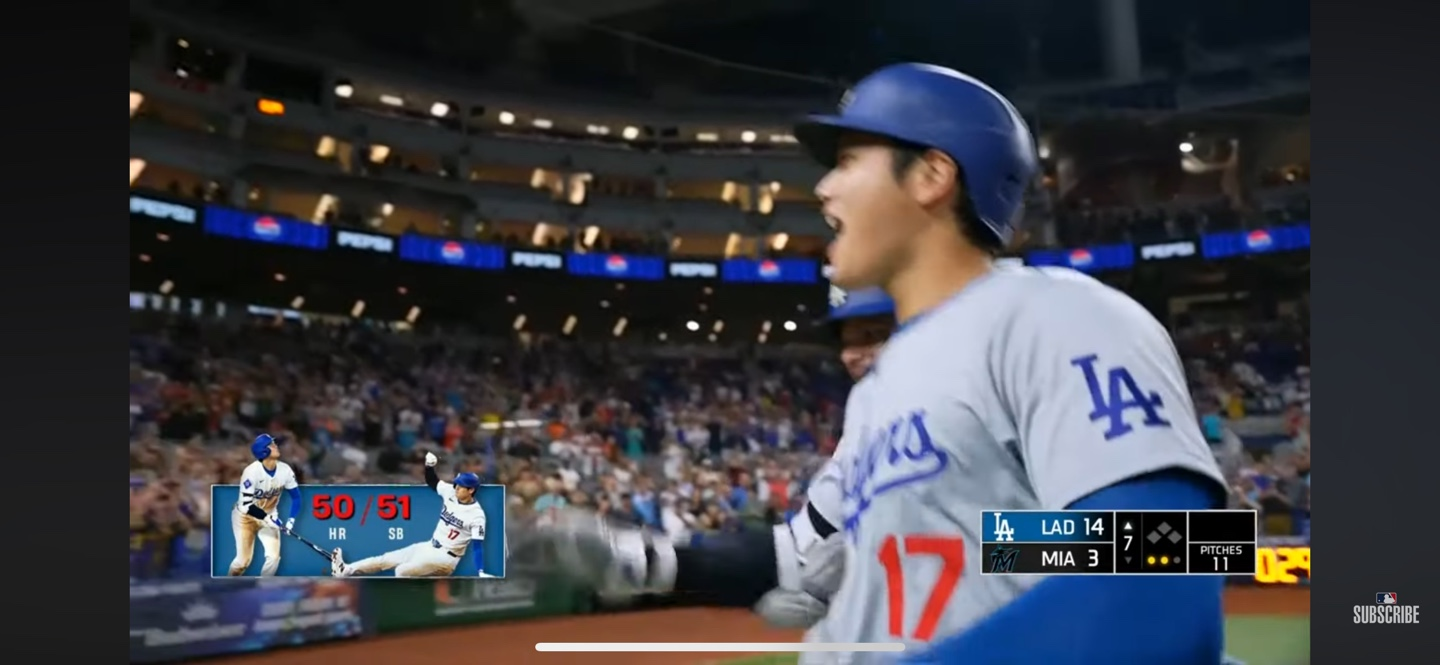 LA다저스의 쇼헤이 오타니가 한 시즌 50홈런-50도루 기록 달성을 위해 달려가고 있다.