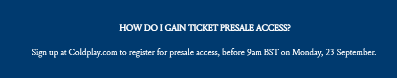 아티스트 선예매는 콜드플에이 공식홈에서 미리 신청한 사람에 한해서 9월 24일 오후 12시에 예매할 수 있는 방법이다.