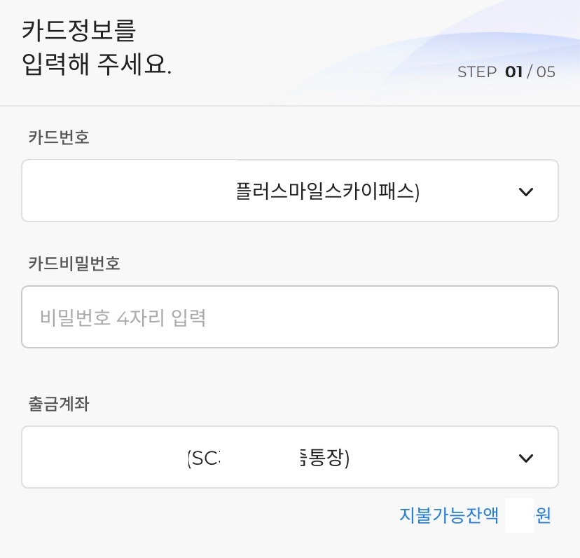 ○ 이번에 SC플러스마일 카드의 선결제를 했기 때문에 SC은행 앱에서 진행하면 되었다.