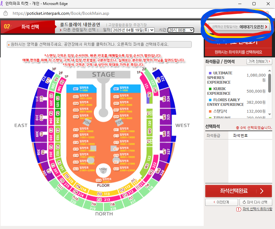 '더 좋은 좌석을 원한다'면 최대한 빨리 좋은 자리에 예매대기를 걸어놔야 하겠다.
