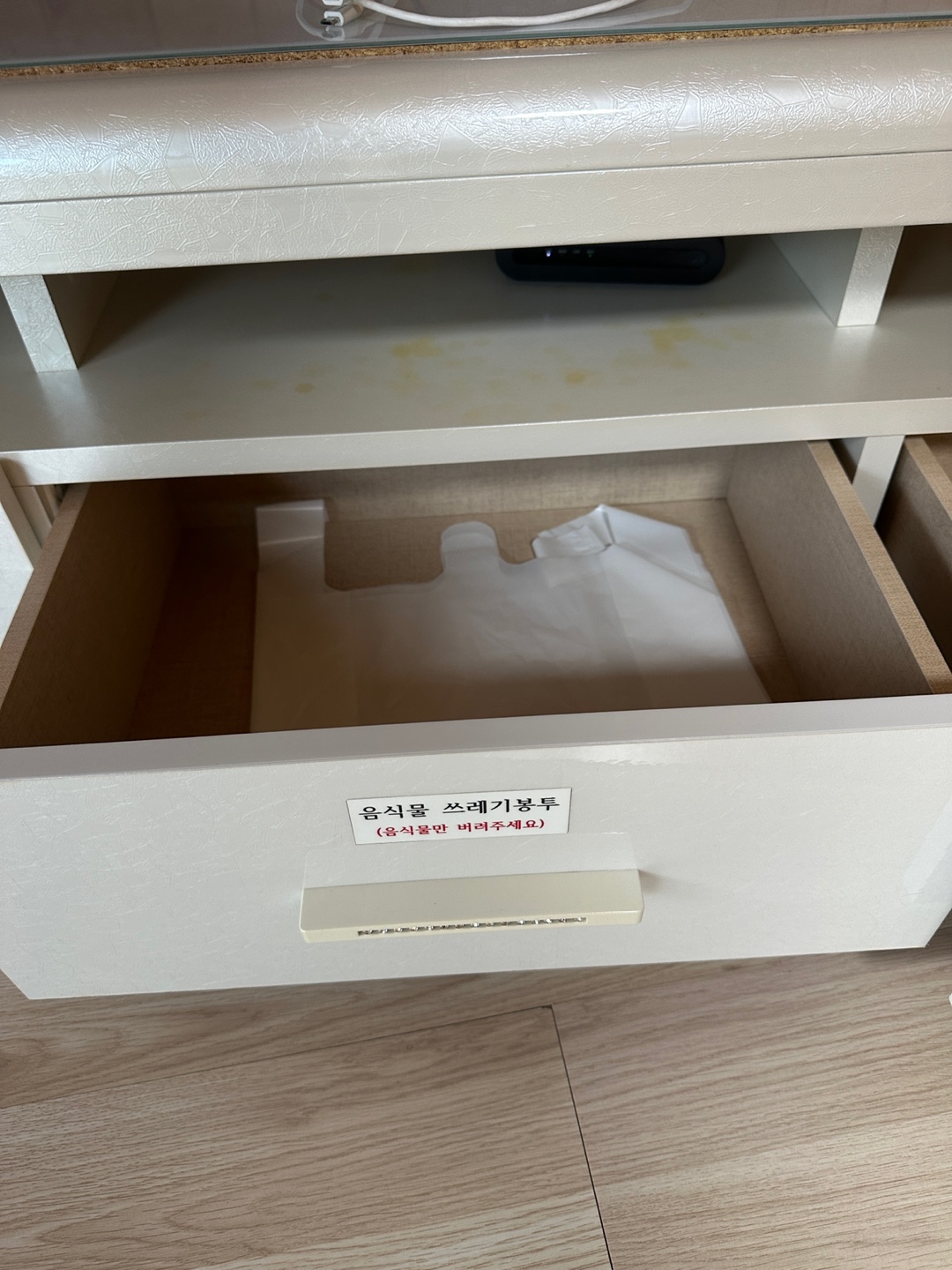 티비 아래 서랍을 열어보면 음식물 쓰레기봉투가 있다.