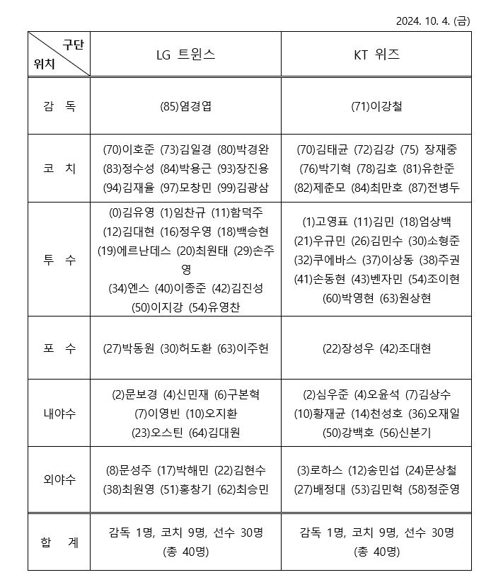 ✅ KT는 와일드카드결정전과 같은 엔트리.