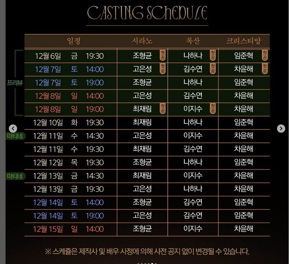 시라노 공연별 캐스팅 일정