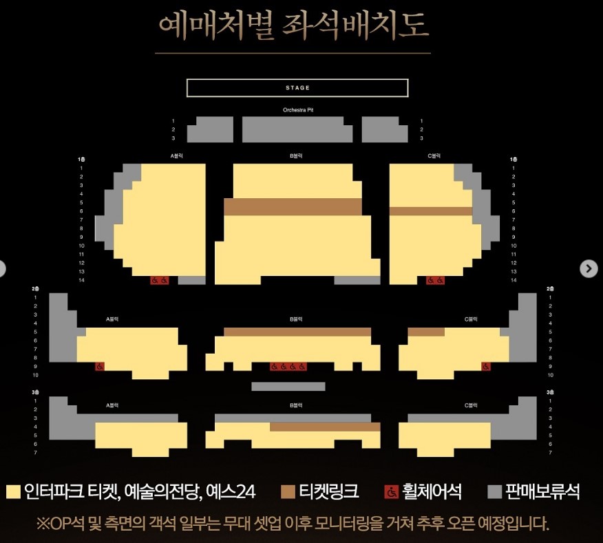 예매처별 좌석 배치도를 보면 인터파크, 예스24, 예술의 전당은 같은 좌석을 동시에 판매한다.