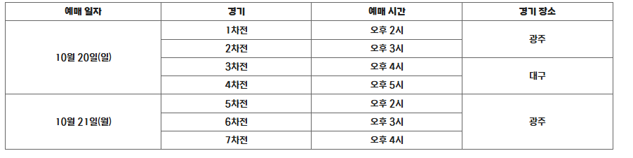 프로야구 플레이오프 기아 대 삼성 입장권 예매는 10월 20일과 21일에 시작된다.