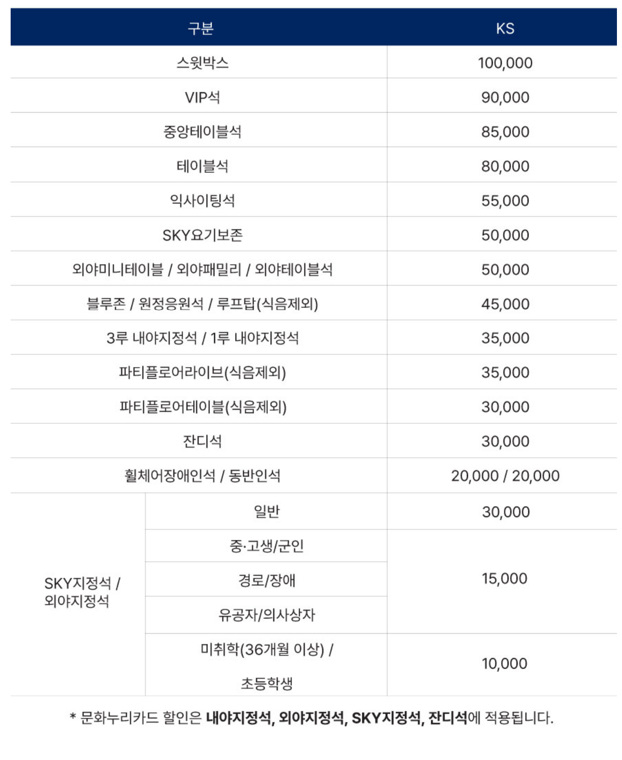 ✅ 대구야구장 한국시리즈 가격은 외야지정석 3만원, 내야지정석 3만5천원 등이다.