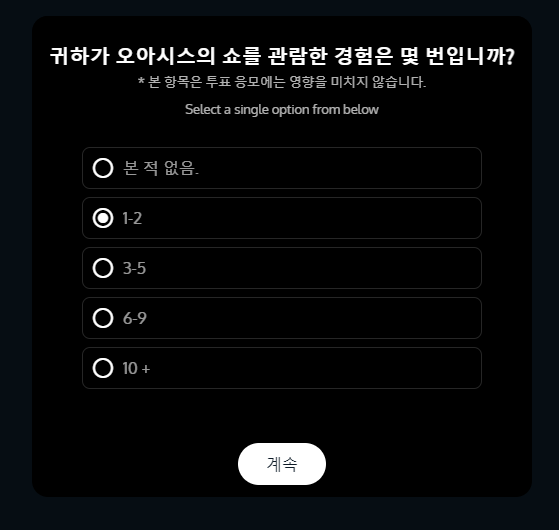 ✅ 오아시스 공연을 본 횟수를 선택한다. (결과에는 영향이 없다고 함.)
