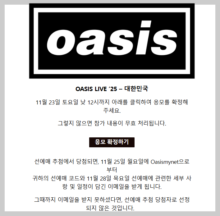 ✅ 오아시스 선예매는 11월 28일(목)에 진행된다.