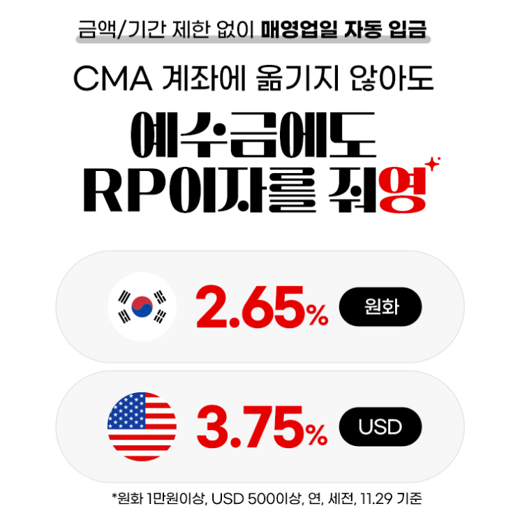 매일 정해진 시간에 원화 예수금과 달러 예수금을 RP에 투자하고 그 이자를 돌려주는 것이다.