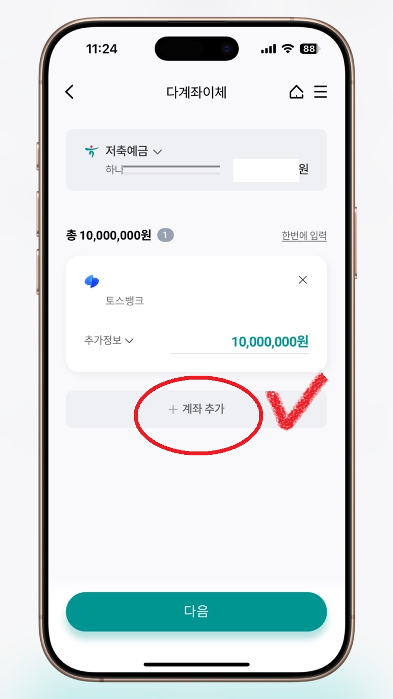 똑같은 계좌를 선택하고 1000만원씩 추가를 하면 된다.