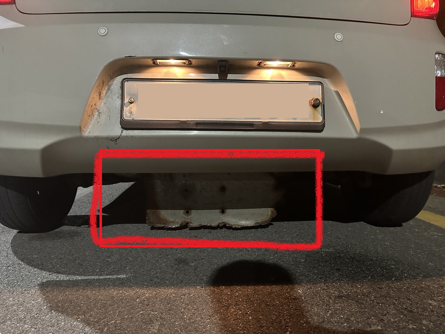 길 위에 떨어져있던 철판이 끌려온 건가 했는데, 차에 달려 있었다.