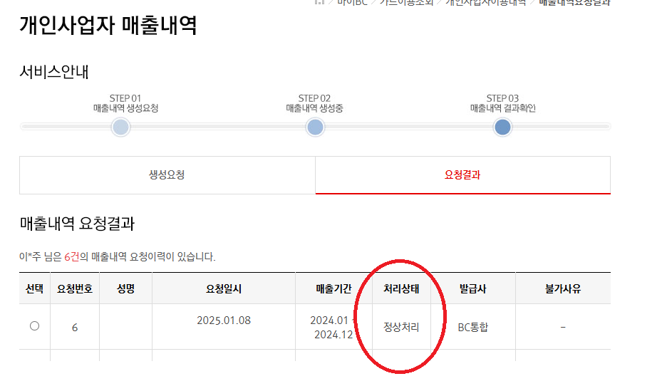 BC카드는 자료 생성하기를 누른 후 약 5분 후에 다시 들어가보면 정상처리 되어 있고, 엑셀파일로 다운로드 받을 수 있다.