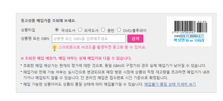 ✅ 매입 가능 상품은 종종 바뀌기 때문에 과거에 매입불가였던 책도 다시 조회해보기!