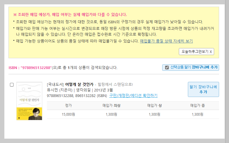 ✅ 나온지 오래된 책, 정말 안 읽는 책은 조회해보고 팔만 하다.