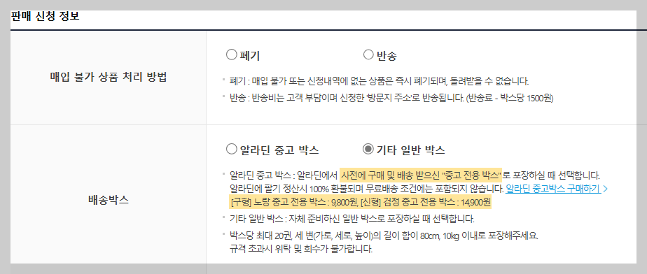 매입하지 않는 책을 보냈거나, 책의 상태를 평가했을 때 매입하지 않기로 결정되었을 때 그 책을 폐기할지 반송받을지를 선택하는 것이다.