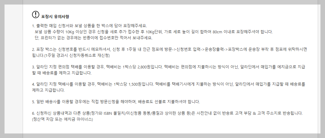 ✅ 책의 종류에 따라 매입을 하는 책 / 균일가로 매입하는 책 / 매입하지 않는 책이 있다.