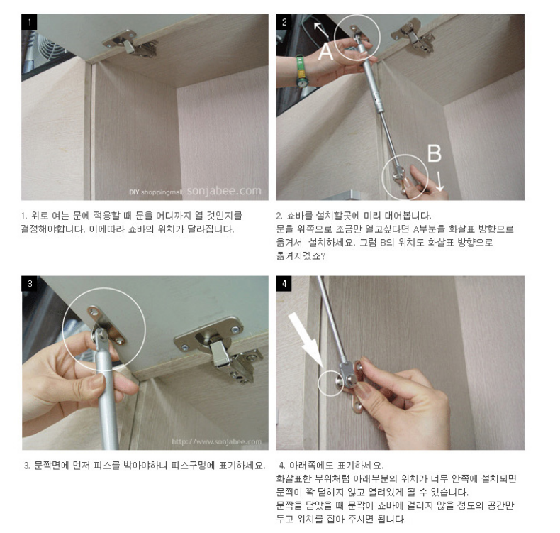 시행착오가 있어서 아주 쉽지는 않았지만, 다 하고 나서 생각해보니 어렵지도 않았던 싱크대 상부장 쇼바교체하기였다.