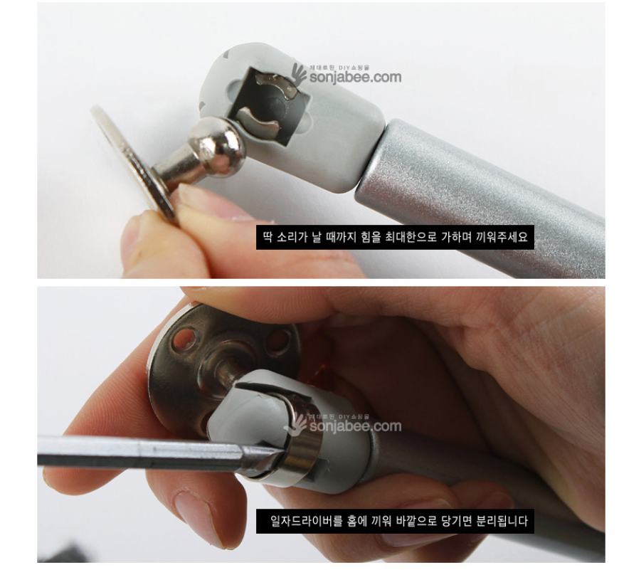 싱크대 상부장 문이 고정되지 않아 손잡이닷컴에서 분리형 볼타입 쇼바를 구매하여 직접 교체했습니다. 기존 쇼바를 분리하는 과정에서 어려움을 겪었지만, 윗부분 나사를 먼저 푼 후 아래쪽 나사를 풀어 해결했습니다. 새로운 쇼바를 설치하고 나니 문이 잘 고정되어 만족스럽습니다. 쇼바 교체는 생각보다 어렵지 않았습니다.