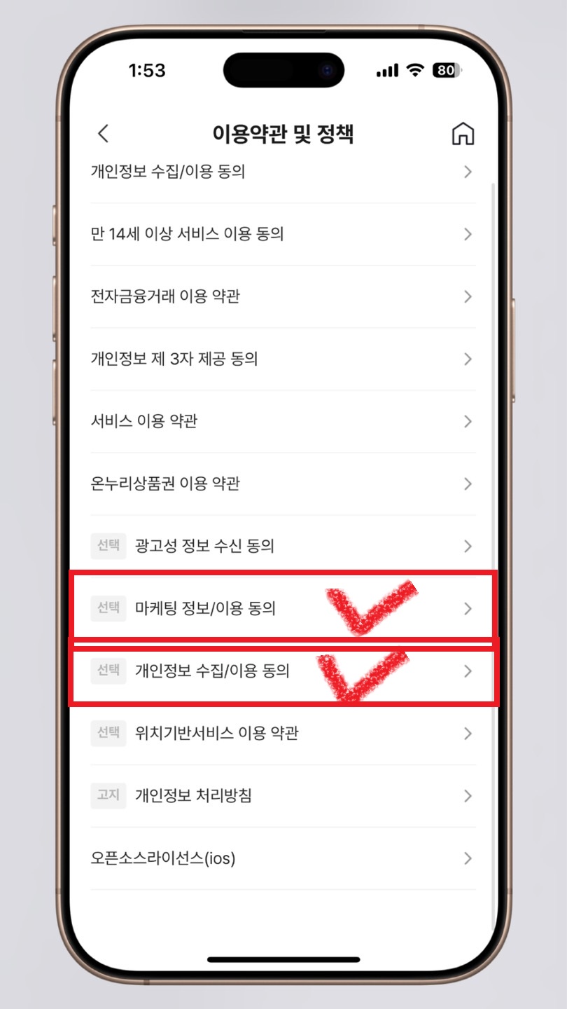 그 다음 화면에서 마케팅 정보/이용 동의와 개인정보 수집/이용 동의를 하면 된다.