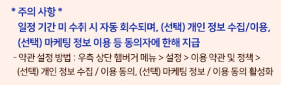 ✅ 개인정보수집 동의, 마케팅 정보이용 동의자에 한해서 지급한다.