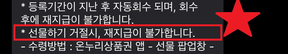 간혹 선물 메세지를 보지 못하고, 그냥 온누리상품권 앱을 열었다가 광고인줄 알고 거절을 누르는 경우가 있다.