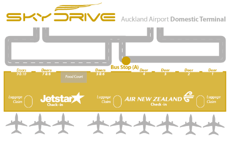 스카이드라이브는 오클랜드공항 국내선, 국제선, 스카이시티에서 정차한다.