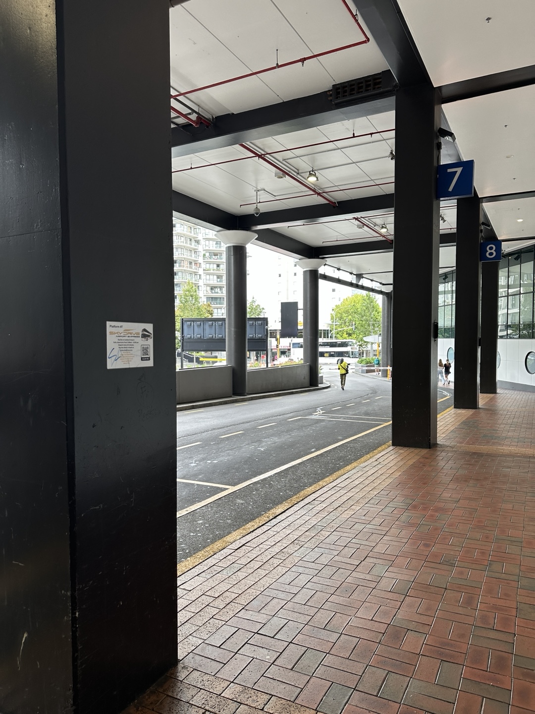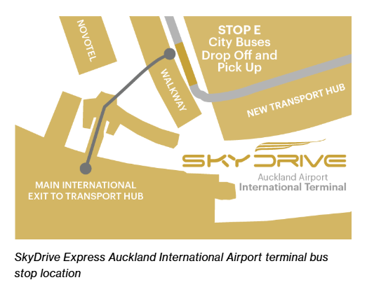 오클랜드 국제선 공항은 출구에서 길을 하나 건너 정류장E(Stop E)에서 탑승한다.