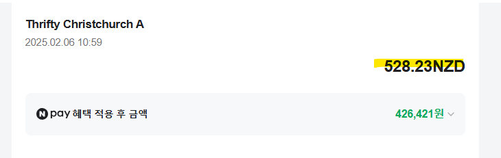 아무튼 현장에서 528.23nzd와 200nzd를 결제했다.