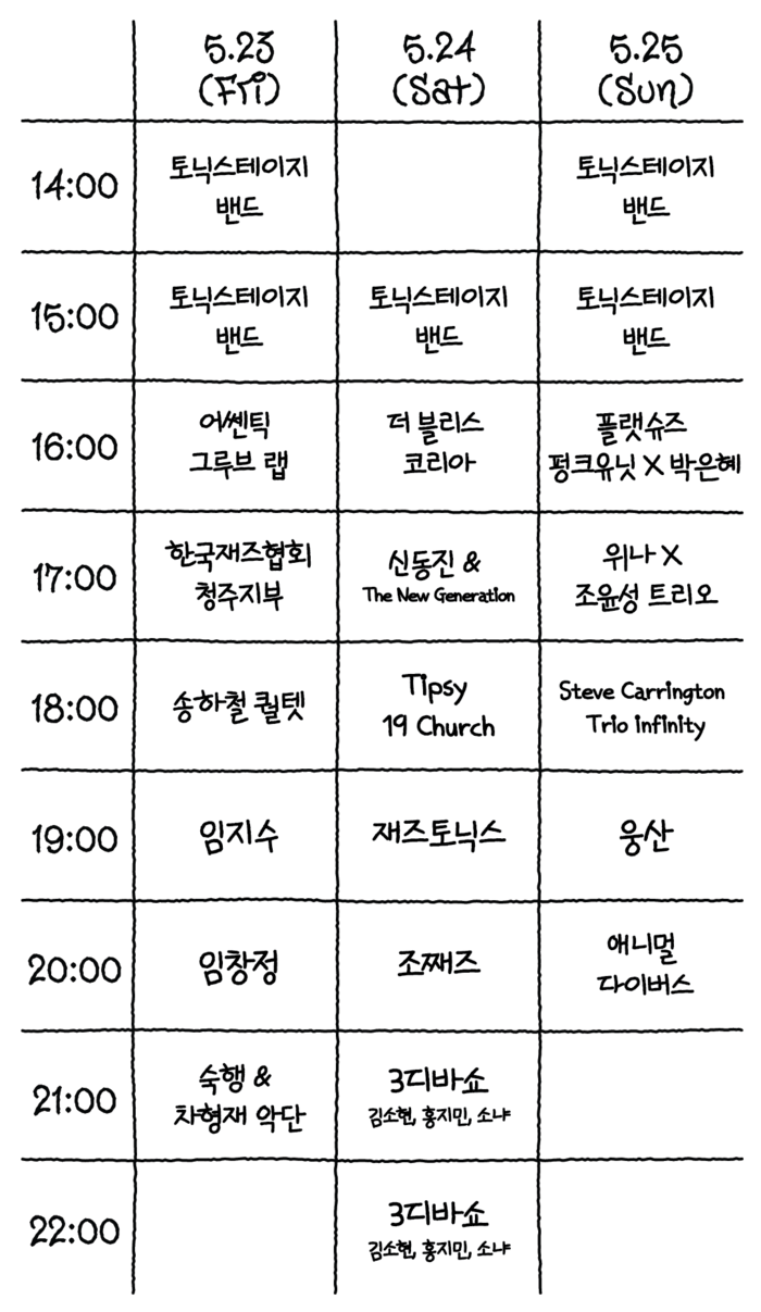 그러다 재즈토닉 공식 홈페이지에 들어갔는데, 타임테이블이 올라와 있는 것이 아닌가?
