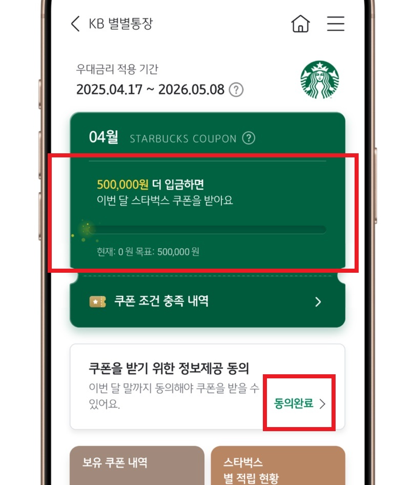 ✅ 스타벅스 쿠폰 발행 동의(쿠폰 혜택) 개인정보 동의서에 동의해야 한다.