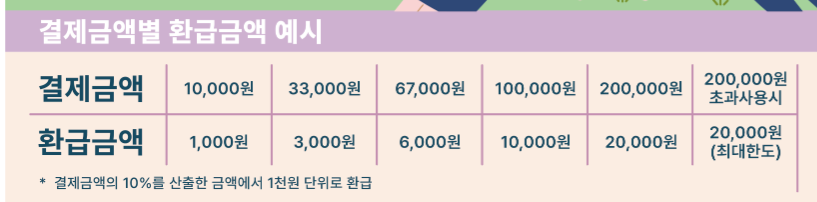 | 환급 금액 | 결제금액의 10%를 1천원 단위로 환급 |