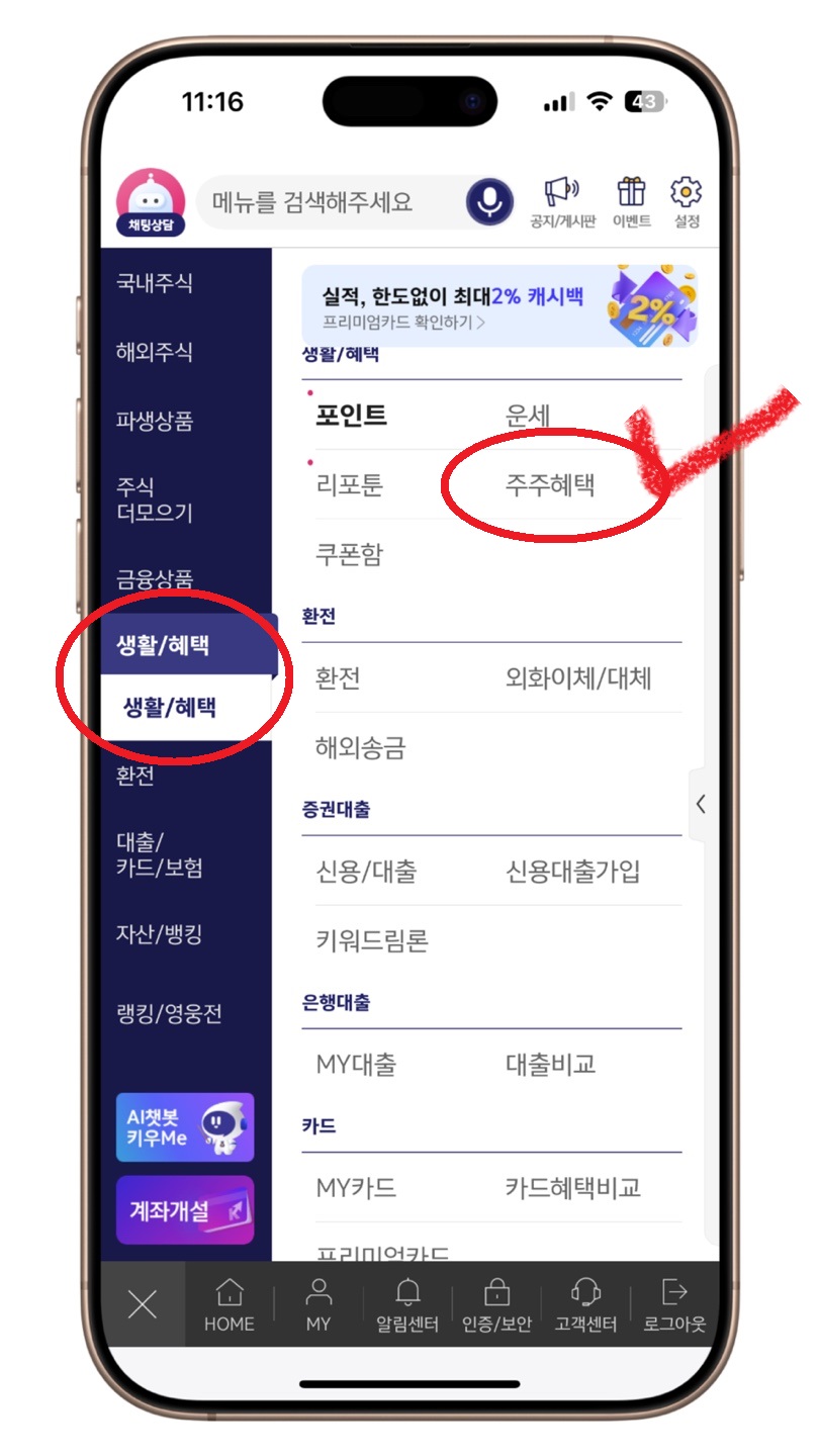 ✅ 앱을 실행한 후, [MY] → [주주쿠폰]